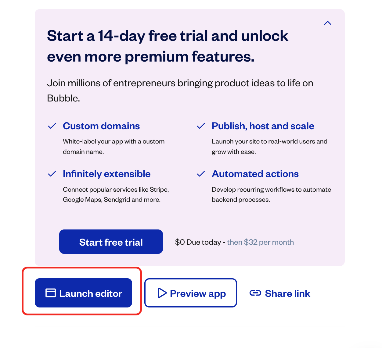 - Select the Bubble app or website where you want to integrate the agent, then click on the Launch Editor button.