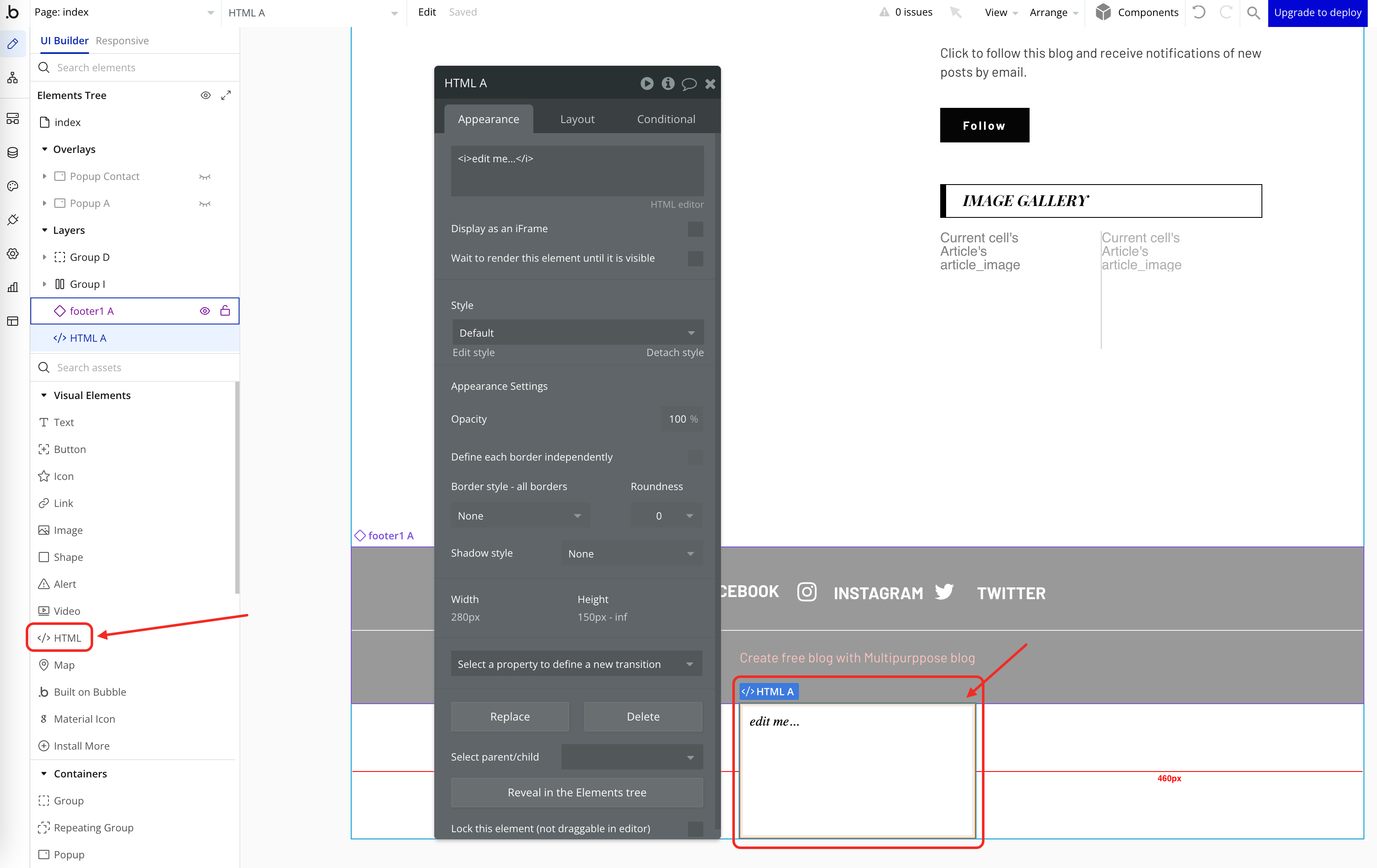 - Double-click on the HTML component to open the code editor.